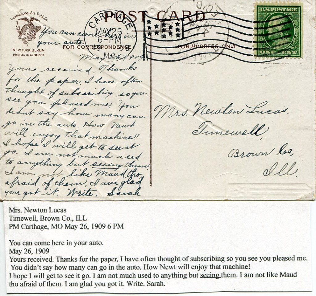 Newton Lucas must have been an adventurous person, with his trip to the Rocky Mountains in his twenties, and buying a car at age 71 in 1909! Henry Ford introduced the Model T in 1908.
