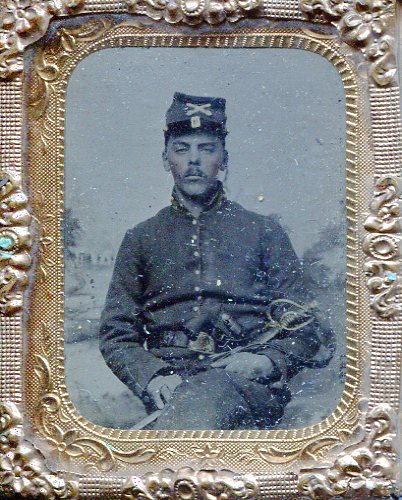 I believe this is a picture of Darwin M. Schenck. There were only a few letters readable on the back of the picture, and they matched up with him from Noah’s Company G. They may have been friends and exchanged pictures.