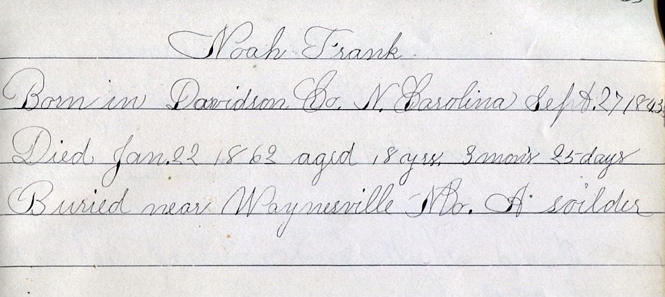 Noah was the second child of William and Sarah Frank, Barbara’s little brother.